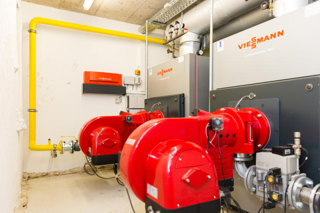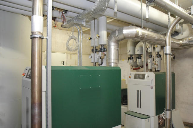 Heizzentrale mit 3 Gasbrennwertkesseln, 2 BHKW`s - Gesamtheizleistung 2866 kW