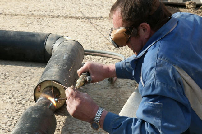 Ausführung des Nahwärmenetzes - ca. 5 km geschweißte Rohrleitungen